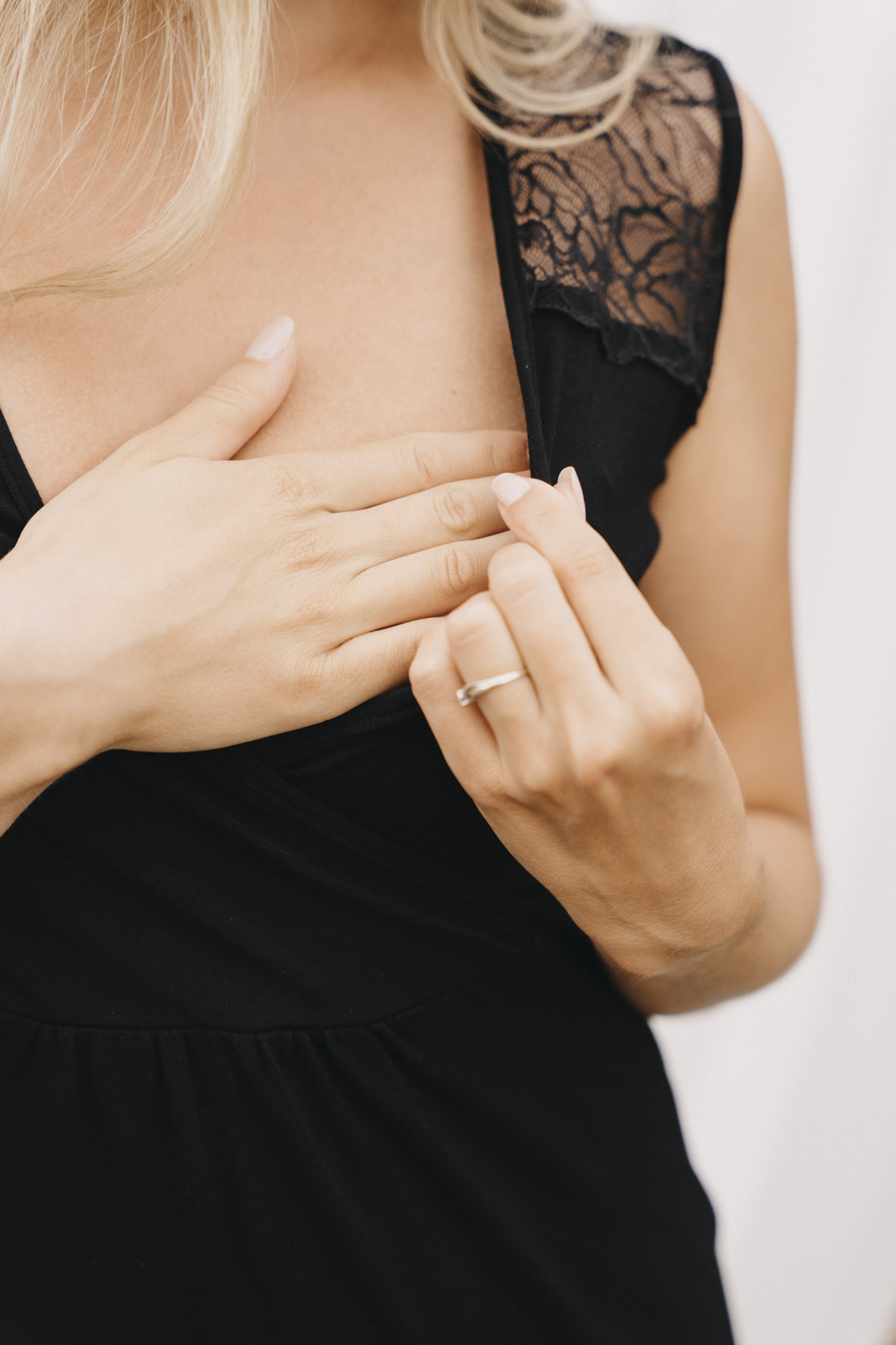 Díky volnému střihu a překřížení ji doporučujeme také těhotným ženám nebo jako kojící noční košili, protože poskytuje jednoduchý a rychlý přístup k prsům.